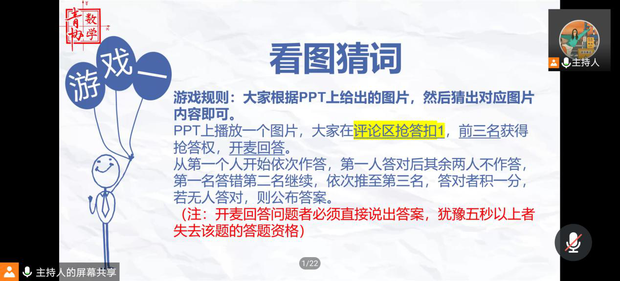 由于疫情防控需要,本次总结大会于线上通过腾讯会议开展。大会首先由主持人杨茗茜和余昊屹介绍到场嘉宾,然后由数学青协指导老师王亚梅老师致辞。王亚梅老师强调了“保持初心”对每一位青协成员的重要性,并提出要学会反思总结,鼓励成员继续奋斗、不断提升工作态度与工作方法。