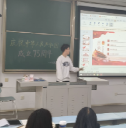 最后,院青年讲师团成员曾丹老师带领同学们深刻感受了中国在过去75年中的发展与变革,她希望同学们在今后的学习和生活中,将个人的理想追求融入国家的发展大局之中,勇敢担当时代赋予的责任与使命。