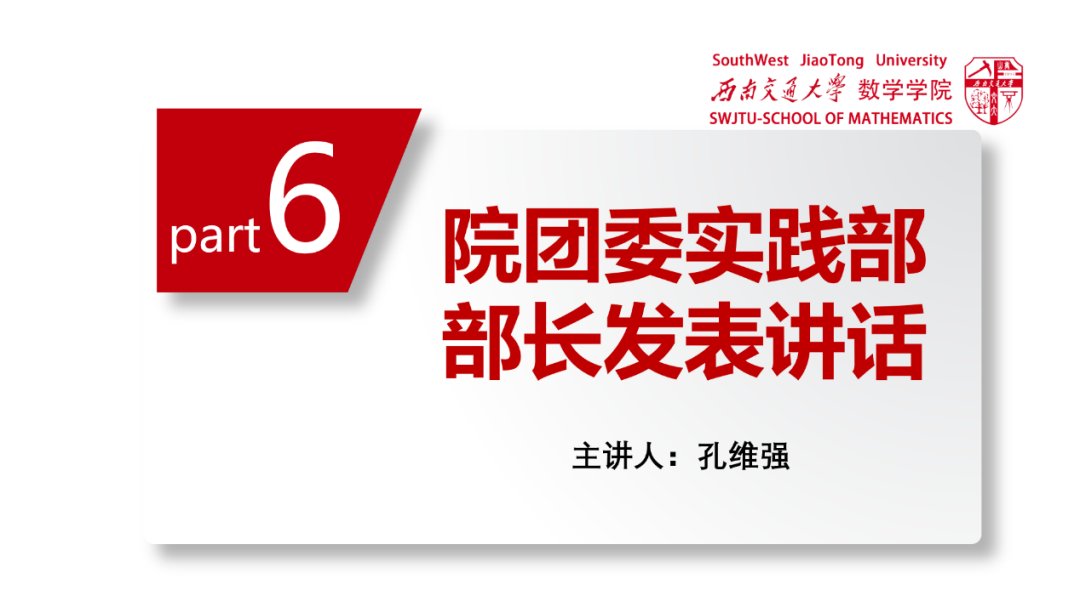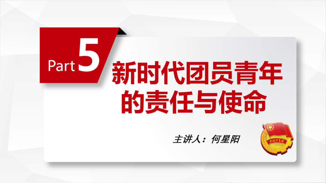 随后,学习委员何星阳为大家普及了中央对各位团员青年下达的命令,发表了题为《新时代团员青年的责任与使命》的演讲。