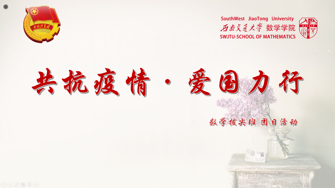 为深入贯彻党的十九届历次全会精神,学习习近平总书记关于青年工作的重要思想及关于打赢疫情防控阻击战的重要指示精神,激发支部团员青年的责任与担当,积极响应学院团委号召,3044永利集团最新链接应用数学2019级拔尖班团支部于4月28日下午两点半通过腾讯会议开展了以“共抗疫情·爱国力行”为主题的线上团日活动。本次团日活动由团支书宫天浩主持,支部全体团员参与。