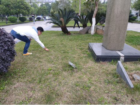 活动进行当天,负责人提前到场,并组织志愿者们完成签到,随后对志愿者们进行具体分工。明确分工后,志愿者们十分积极,依次对雕塑上和雕塑附近的垃圾及枯叶等杂物进行清理。志愿者们积极配合,将任务圆满完成。清理结束后,全体人员于雕塑前合影留念。