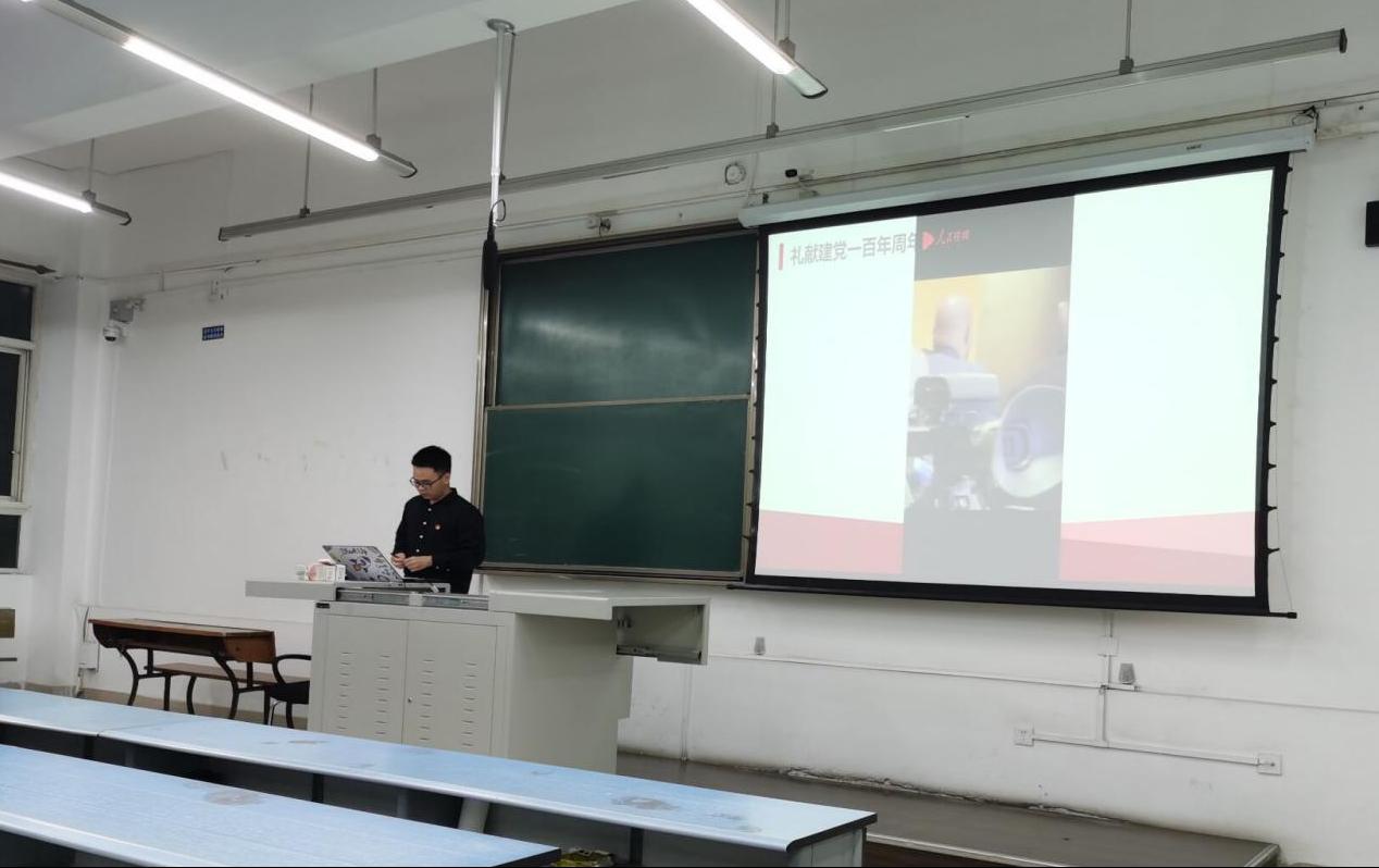 最后,梁浩通过一段简短的视频,带领各位团员回顾了中国共产党的百年历程。他邀请了两位团员发表自己的感想。安禾嘉同学表示生在这样的时代既是机遇又是挑战,当代大学生身负责任和使命,为中国人民谋幸福、为中华民族谋复兴、为世界谋大同。张效龙同学表示作为一名大学生,我们有责任、有信心、有能力为科学社会主义新发展做出更大历史贡献。
