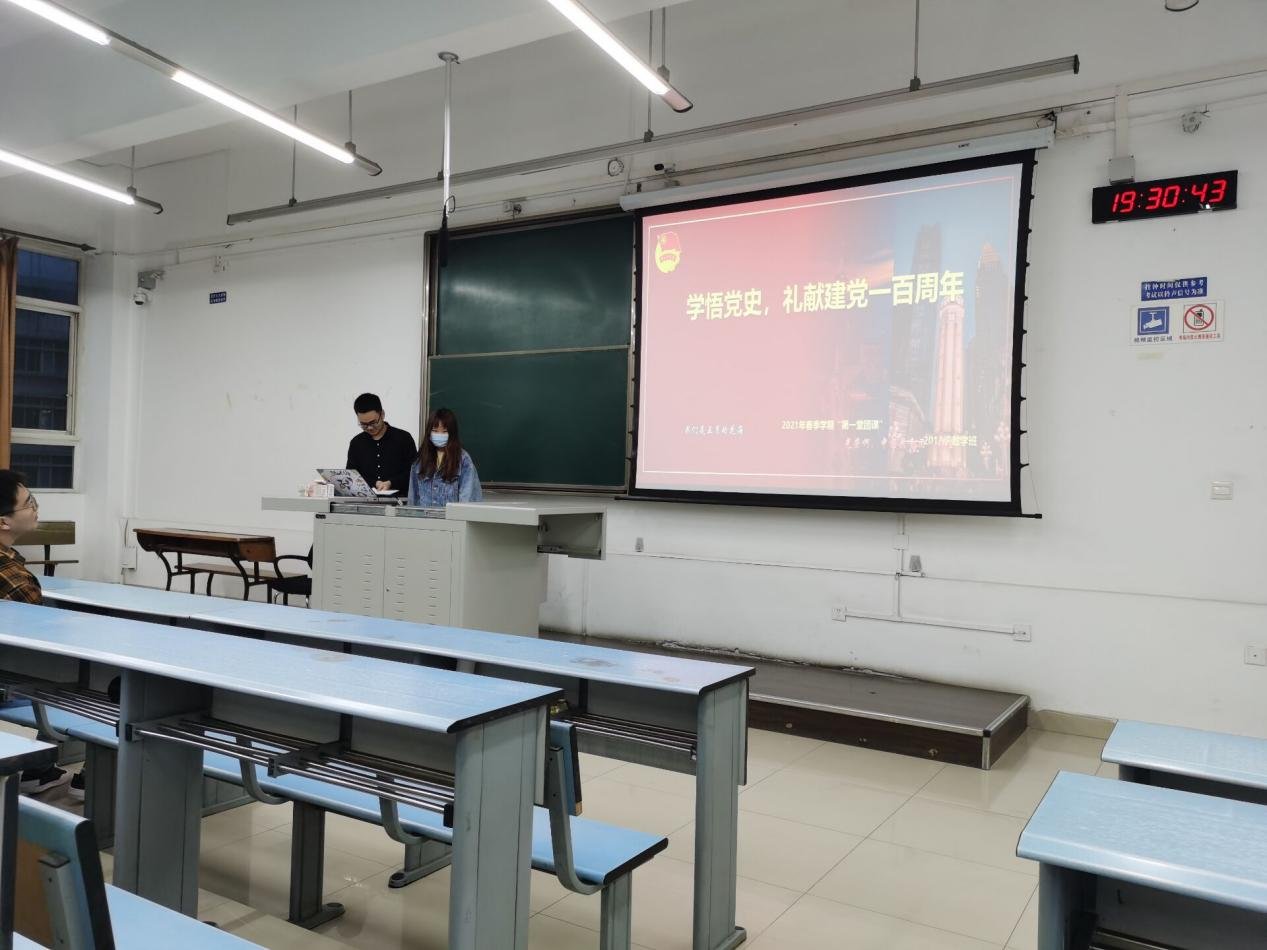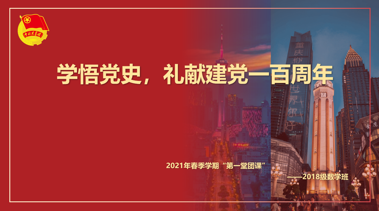 为加强团员青年学生的思想政治引领,3044永利集团最新链接应用数学2018级1班团支部于4月9日19:30在X2416开展了“开学第一堂团课”。此次团课以“学悟党史,献礼建党一百周年”为主题,由数学一班团支部书记梁浩同学和数学二班团支部书记邱灵同学共同主持开展。团支部特别邀请“团干部联系青年1+100制度”的联系人林玉、邱灵参加团课。