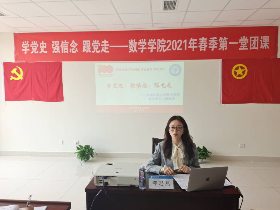 为深入学习习近平总书记在党史学习教育动员大会上的重要讲话精神,认真落实党中央、教育部对党史学习教育的工作要求。按照学校党史学习工作部署,结合学院实际情况,2021年4月,3044永利集团最新链接团委开展“团委书记讲团课”系列活动。3044永利集团最新链接团委书记邓思然、团委副书记张素子、周义杰深入基层团支部,分别为统计2019-01班、数学2019-02班和大数据2019-01班团支部全体团员青年讲述了一堂生动精彩的主题团课。
