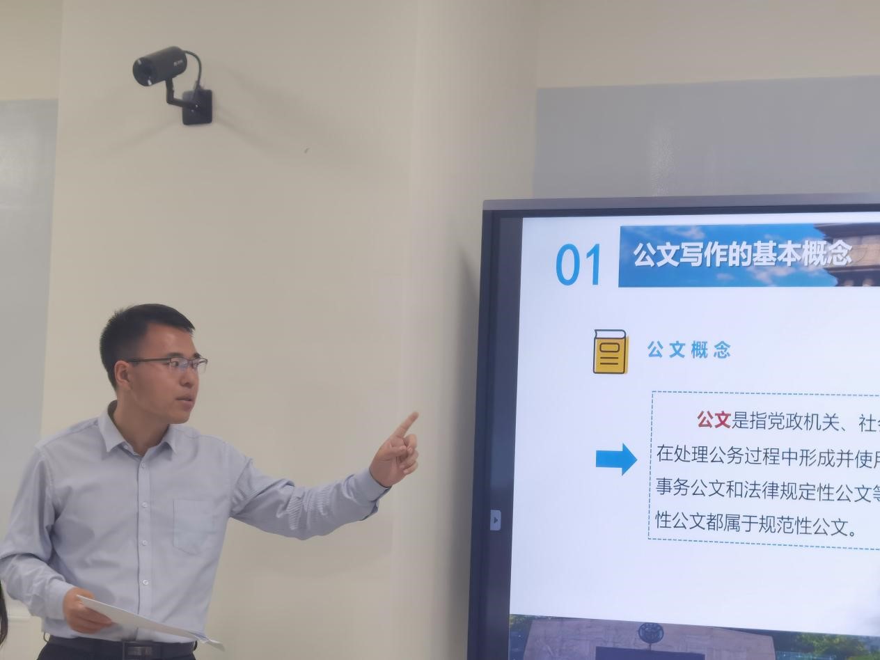 贾兆帅老师还从优秀机关公文的十大特征出发,点出了公文写作的要害。最后,贾老师介绍了公文写作的基本功法。他指出,要写出一篇优秀的公文,首要前提便是提高对政策的熟悉度。他建议同学们平时要多了解有关的政策方针,熟悉相关的法律规定,善于把握政策新动向。此外,他也强调,“好记性不如烂笔头”,多写作、多思考,也会给公文写作带来很大提升。