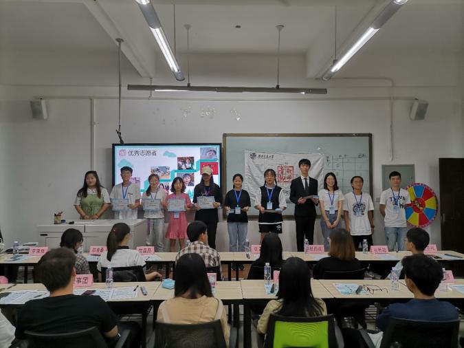 在这之后是展示部员们精心制作的视频的时间,同学们将对数学青协,对自己接下来的志愿之路的祝福写进了视频之中。随即是会长、部长们为大家精心准备的小节目,青协成员们挥舞着双手,沉醉其中。接着是颁发优秀志愿者证书,以及优秀志愿者代表发言。