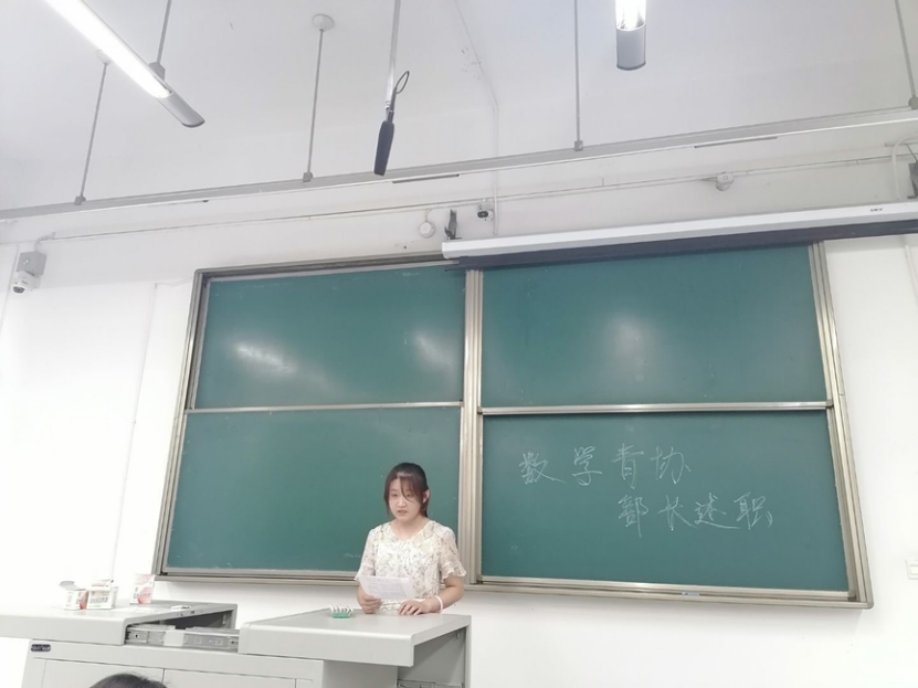 大会于当晚7时30分准时开始。第一项内容是部长述职,各位部长按照活动部,办公部,宣传部的顺序依次上台,分别对自己负责的任务以及活动进行介绍,并对自己一年以来的工作之中的不足之处进行反思,希望接班人们引以为戒;还有对新任部长的期望,例如活动策划创新、突发情况处理等方面;亦抒发了一年以来,自己对青协的深厚感情,引得众人动容。在此之余,各位竞选者也积极地记录着部长们的工作经验,争取来年做到“青出于蓝而胜于蓝”,努力做到让数学青协越办越好。