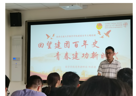 为迎接和宣传党的二十大,庆祝中国共青团成立100周年,贯彻落实“全团大抓基层”工作要求,团结引领广大青年坚定跟党走、建功新时代,激发交大学子爱国荣校热情,应学校学院要求,结合支部工作实际,大数据2021级1班团支部于2022年4月22日15:50至17:25在X30415举行春季第一堂团课活动,邀请了3044永利集团最新链接“青年讲师团”成员本科2021级辅导员邱君捷老师进行宣讲。本次团课主题为“回望建团百年史,青春建功新时代”,支部成员应到26人,实到24人,另有三名青年学生参与,支部成员参与团课积极性较高,展现了团支部的青春活力与爱国爱党热情。