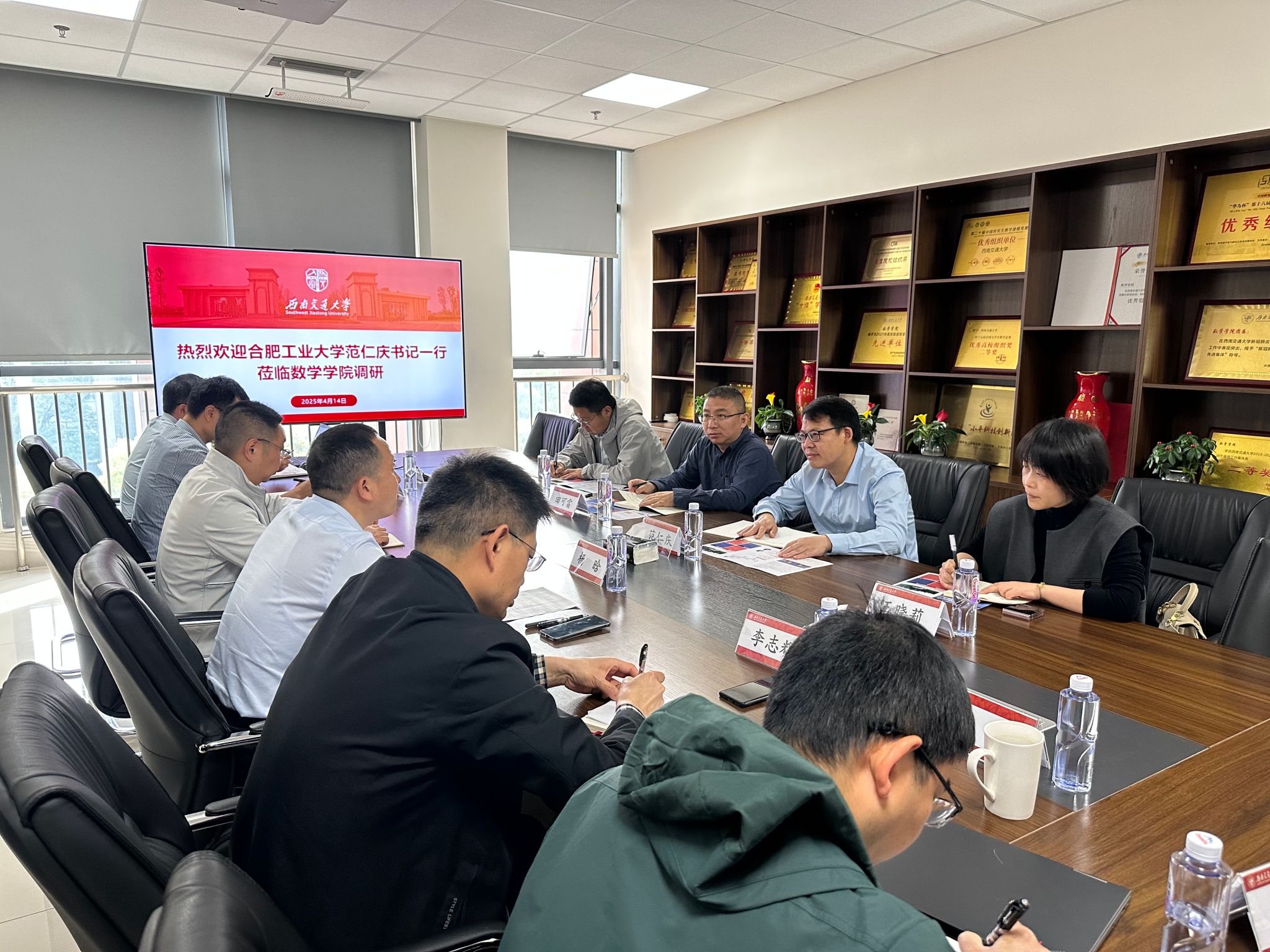 2025年4月14日上午,合肥工业大学3044永利集团最新链接范仁庆书记一行到学院调研交流。学院院长杨晗,副院长李志辉、王璐,专项工作负责人黎定仕、杨洋、黄磊、孟华参加会议。